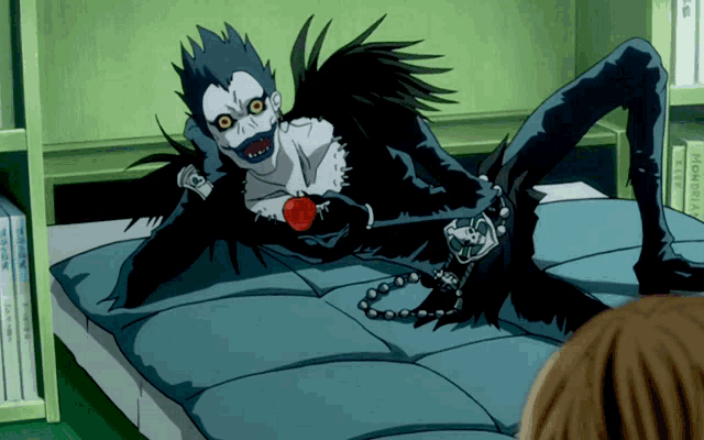 He drops the Death Note out of boredom. He watches Light’s entire arc — the manipulation, the murders, the careful construction of a new world order — with the detached amusement of someone who found an interesting ant farm. He eats apples. He laughs at inopportune moments.
