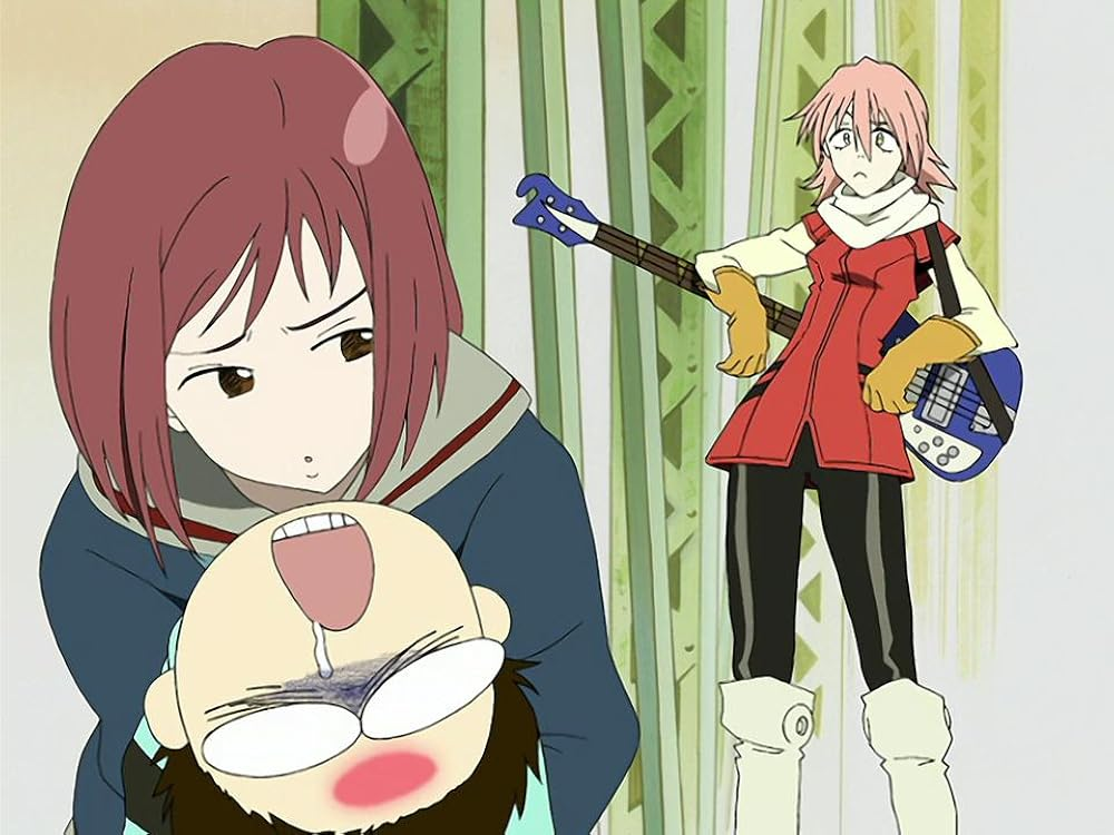 Naota spends the series surrounded by adults who have no idea what they’re doing. His father obsesses over a washed-up baseball player. Haruko is literally using a twelve-year-old to work through her obsession with someone else. Mamimi clings to Naota because he’s safe—he can’t actually hurt her the way her peers can. Every adult in his life is either absent, dysfunctional, or actively making his situation worse while pretending to help.